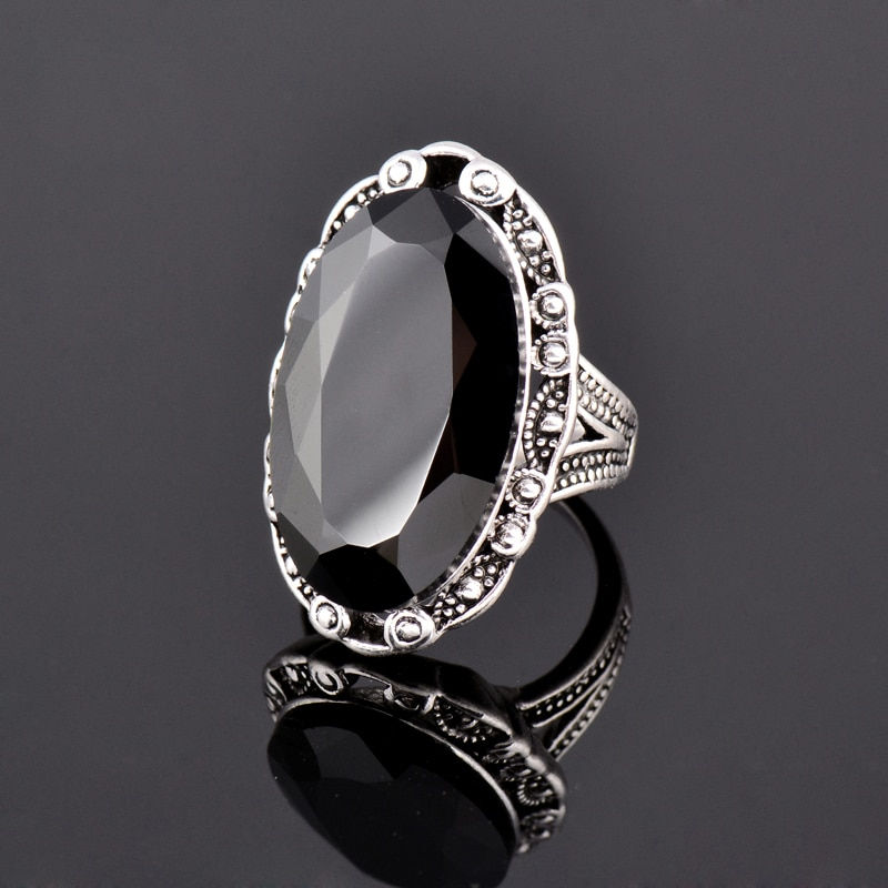 SINLEERY Vintage Big Black Oval Stone Rings For Women